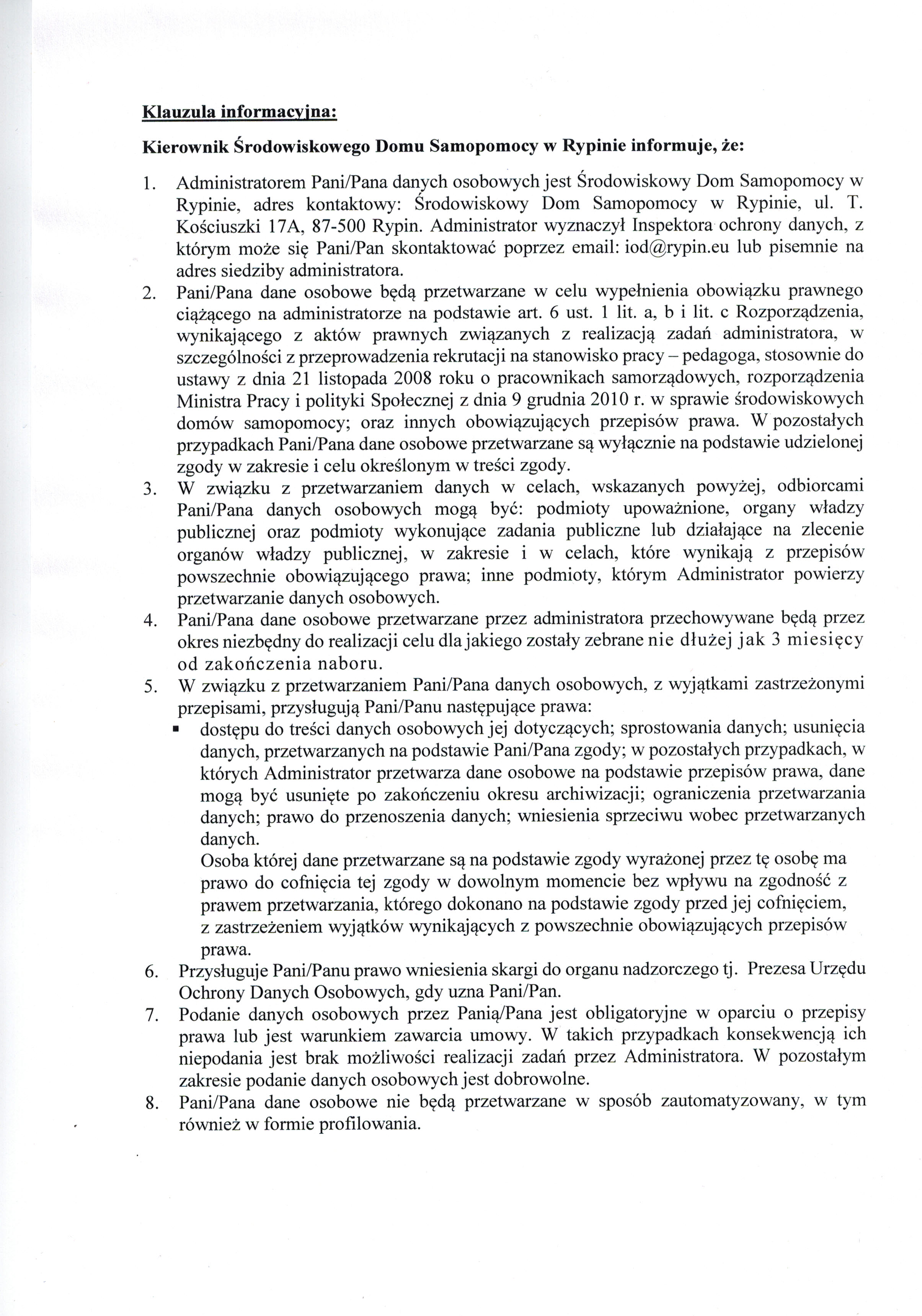 - Miejsce składania dokumentówŚDS Rypin