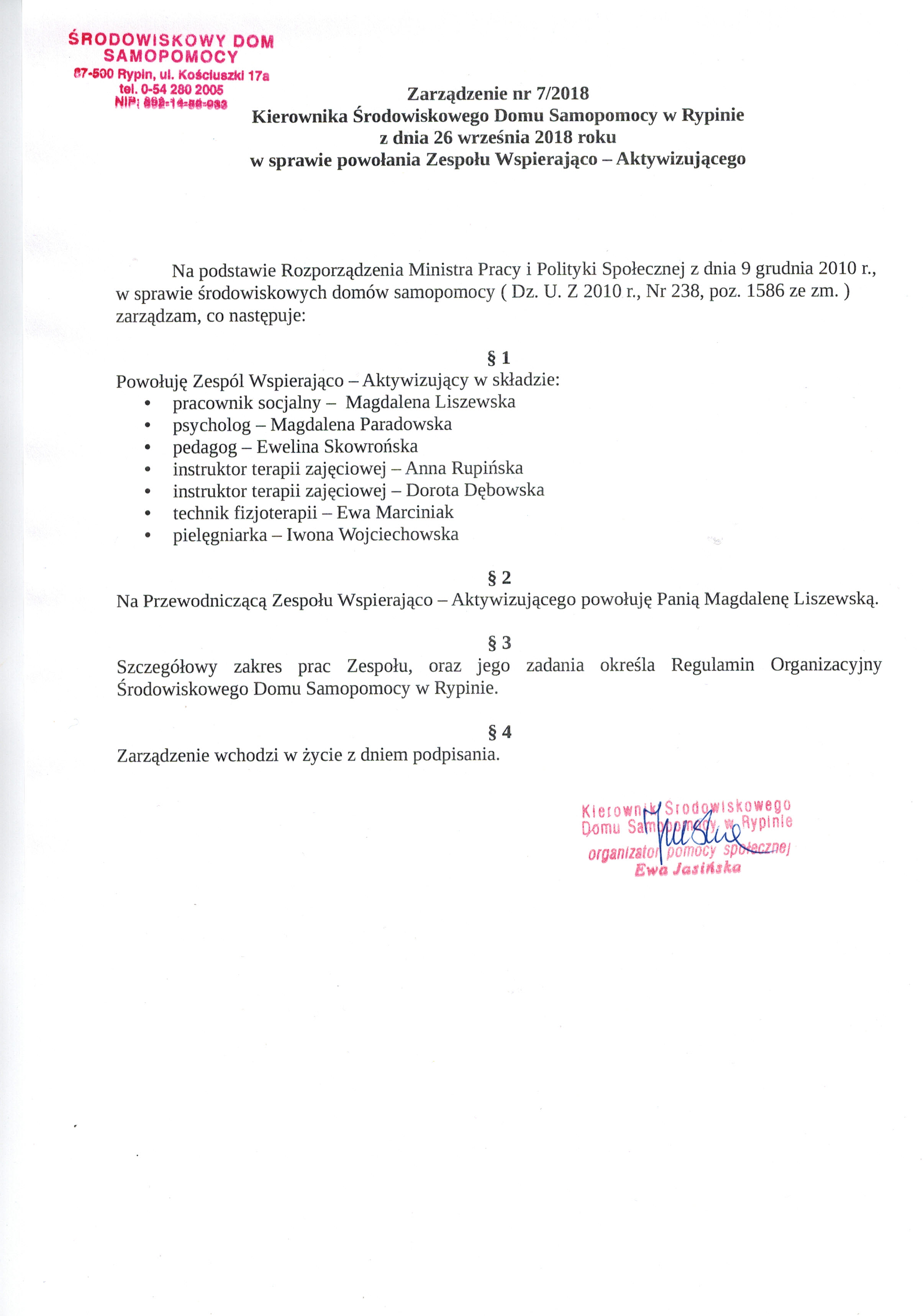 | utworzono: | data: 10:42, 28.09.2018 | przez: Magdalena Liszewska | Zarządzenie nr 7/2018 Kierownika ŚDS w Rypinie z dnia 26 września 2018roku w sprawie powołania Zespołu Wspierająco - Aktywizującego |