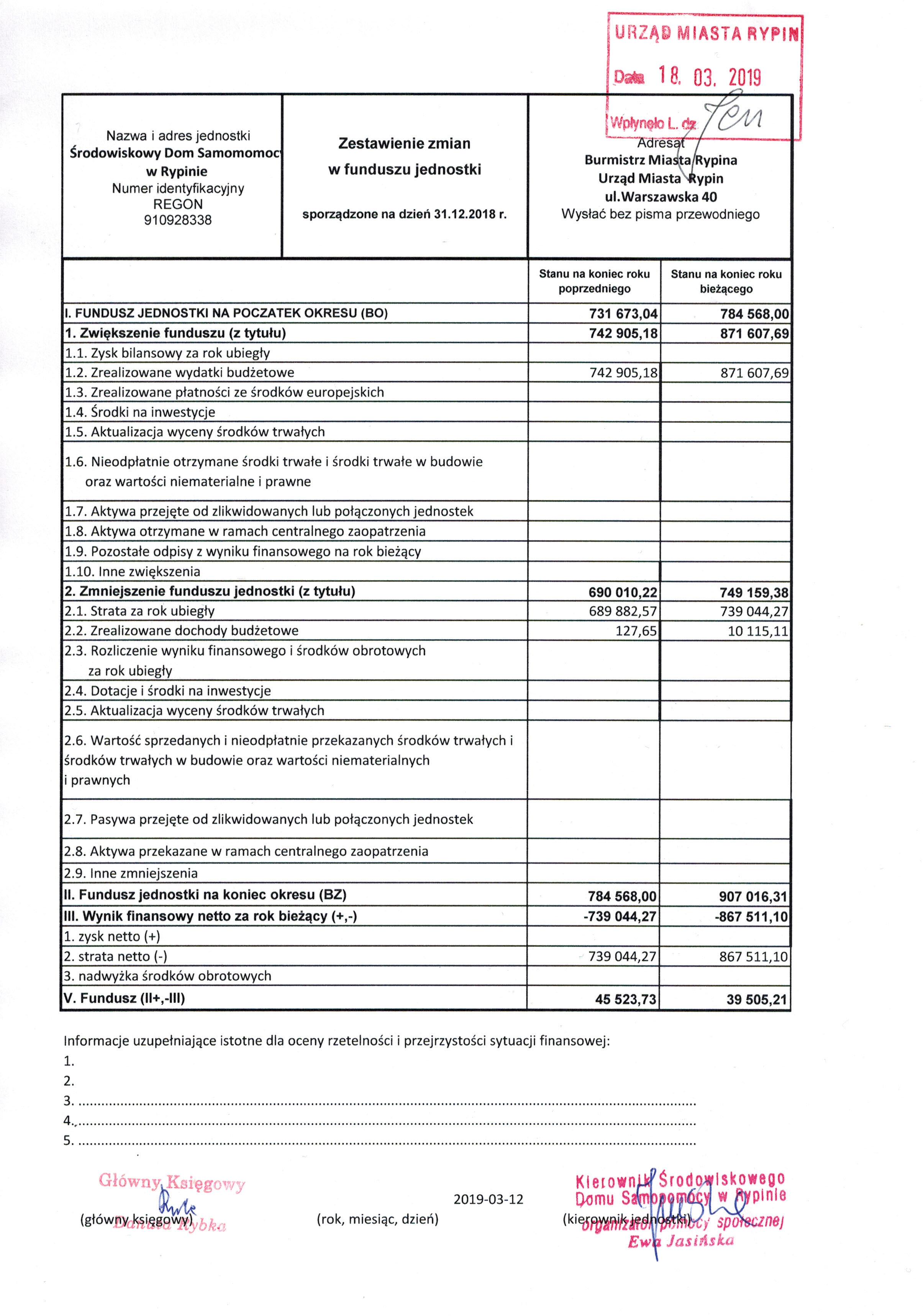 | Zestawienie zmian w funduszu ŚDS Rypin 2018 | dodany: 15:00, 09.05.2019 | przez: Magdalena Liszewska |